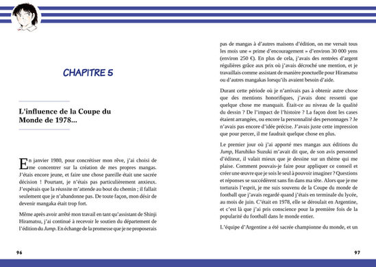 Le créateur de Captain Tsubasa, Yoichi Takahashi, nous explique dans cette autobiographie les procédés créatifs qui lui ont permis de faire de cette série japonaise l'une des plus cultes de toute l'histoire de la pop-culture !